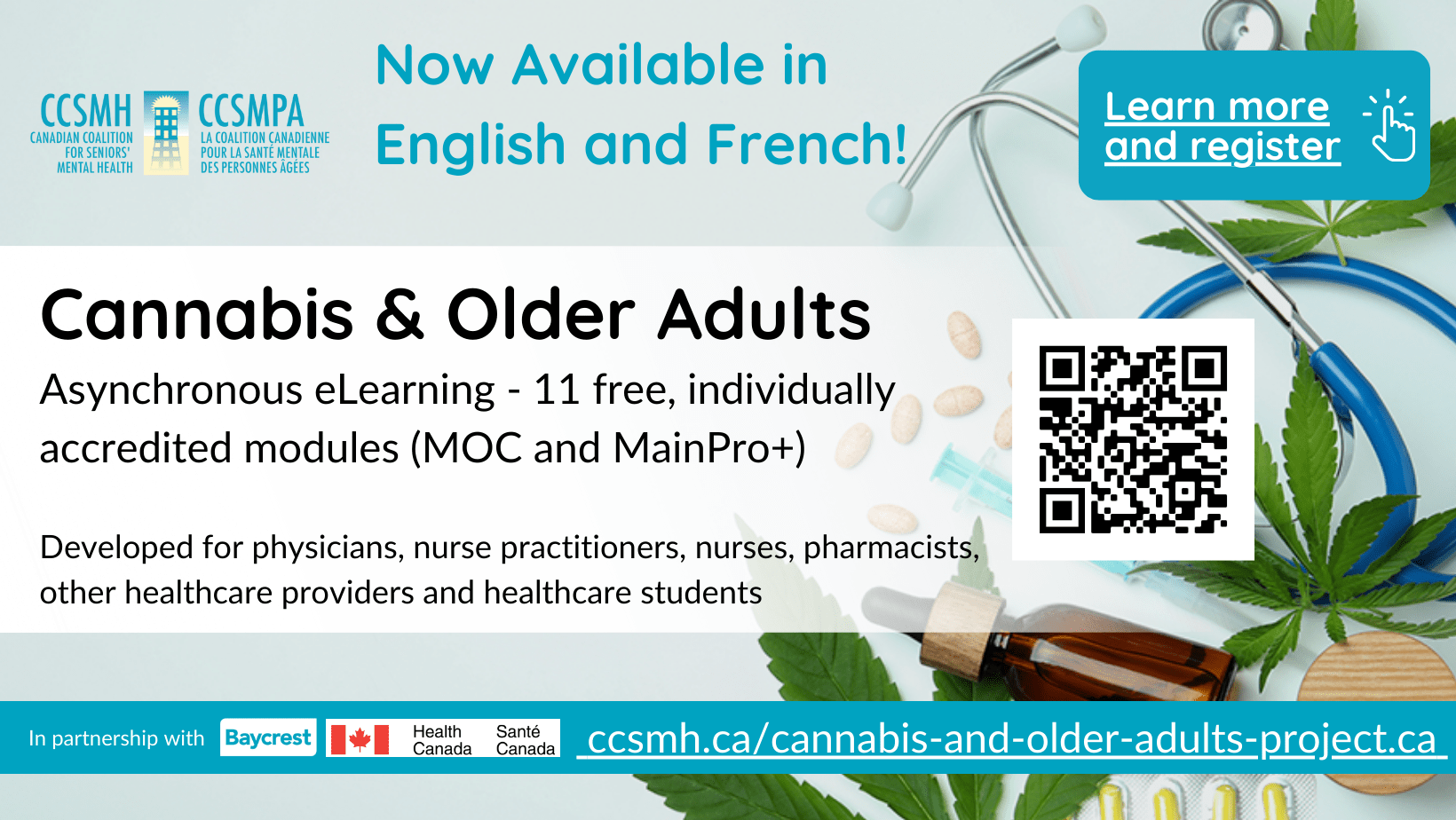Developed for physicians, nurse practitioners, other healthcare providers and healthcare students this elearning resource includes information on assessing appropriateness of medical cannabis for older adults, optimizing communication with older adults about cannabis and monitoring for potential adverse effects of cannabis among older adults. Created by the Canadian Coalition for Seniors’ Mental Health in partnership with Baycrest.